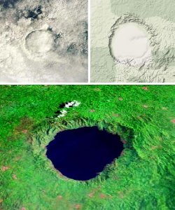 Menghasilkan kawah dengan diameter 13km dengan kedalaman 220m, saat ini kawah tersebut menjadi sebuah danau.